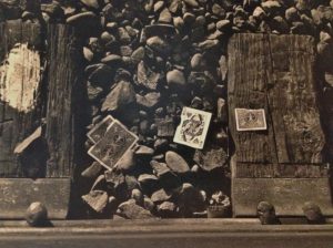 Within these cluttered collections it is possible to sift out bits and pieces of a larger narrative. As I turn a corner with my newest novel these seemingly transitory fragments inform me of a deeper story. These small details are a mosaic – a mosaic of torn pages, a poorly developed picture, a canceled check, a handful of loose beads.